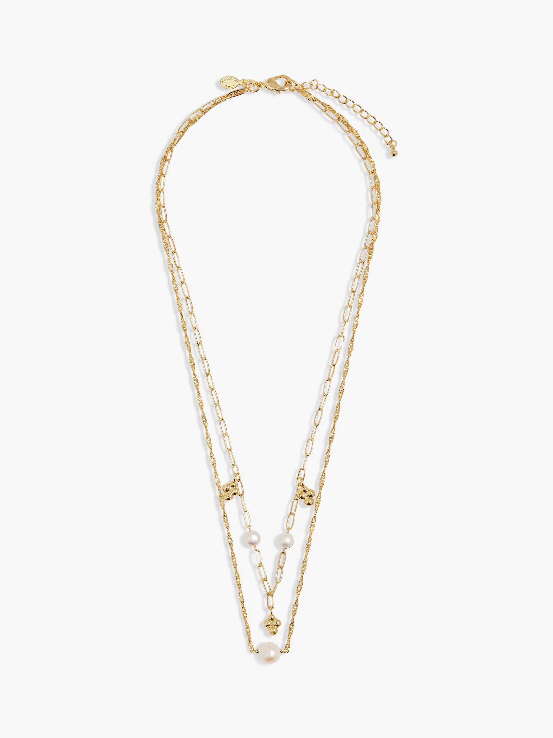 Say hello to Joma Jewellery's Stacks Of Style necklace in white Pearl and gold plating.