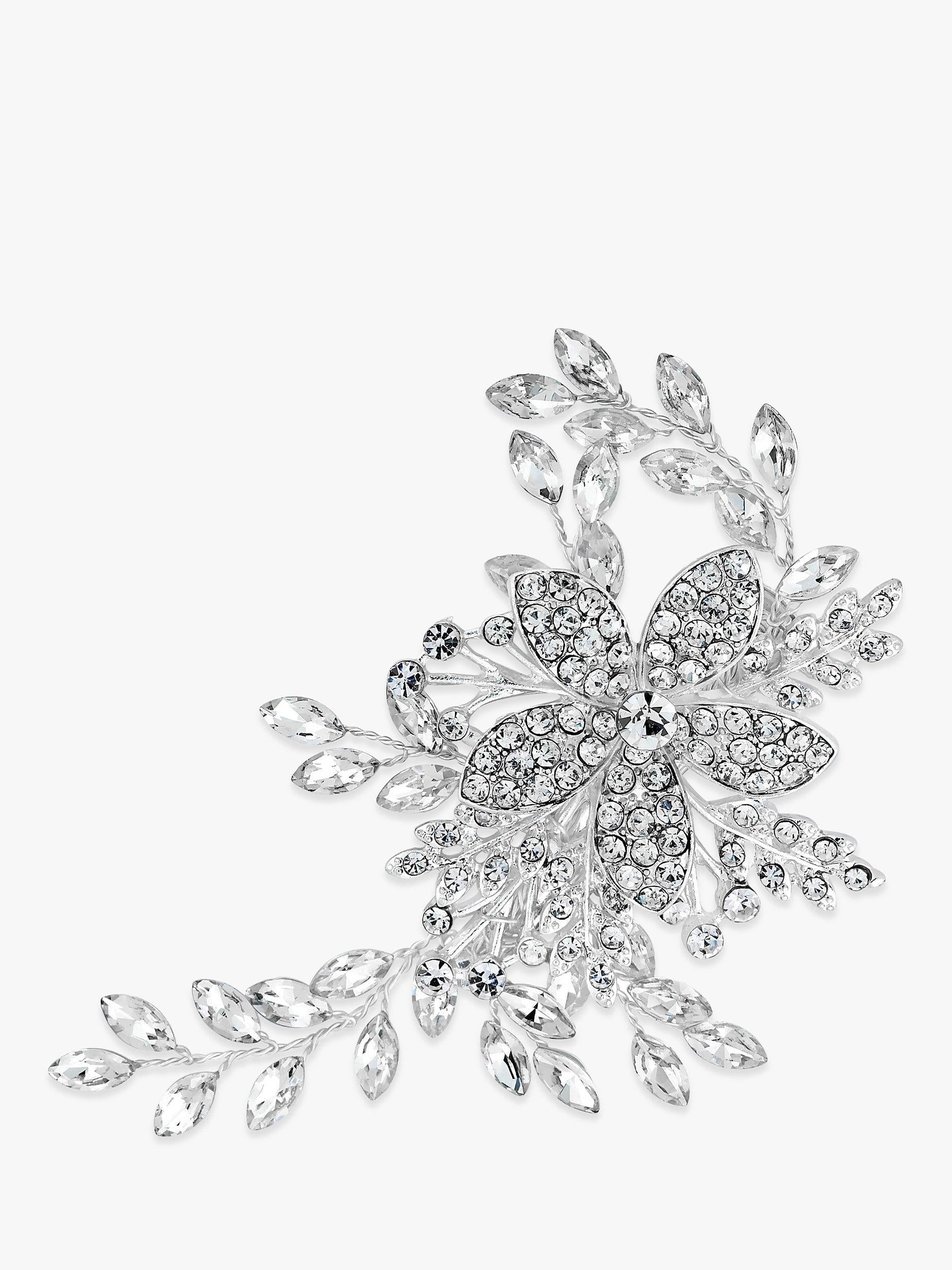 The Jon Richard Bridal Darcey Pave Leaf Slide in sophisticated silver presents the ultimate accessory choice for your wedding day styling needs. This meticulously crafted hair piece provides brides with striking visual appeal, injecting immediate glamour into any chosen arrangement. It secures perfectly whether framing an elegant bun or adorning softly.