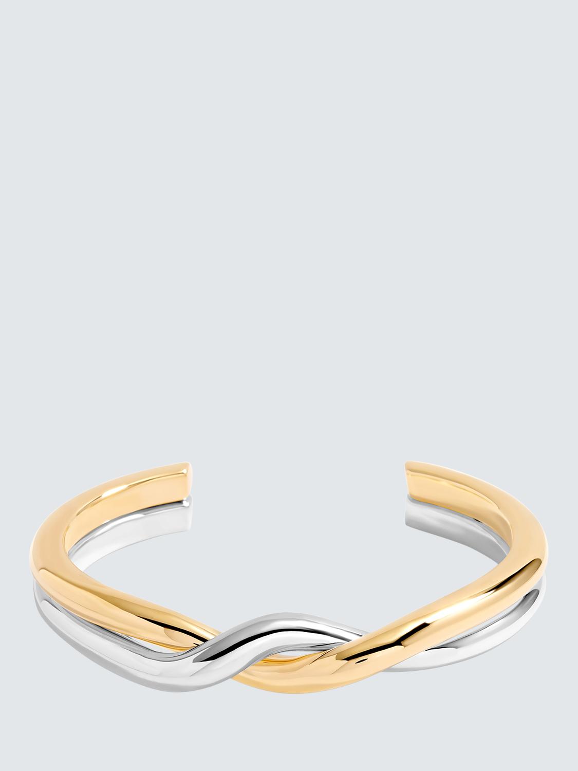 Jon Richard presents this elegant Two Tone Twisted Cuff bracelet. It masterfully combines polished gold and silver tones within a modern, sophisticated design. This cuff adds instant depth and striking contrast to any ensemble, making it a versatile jewellery staple for day or evening wear.
