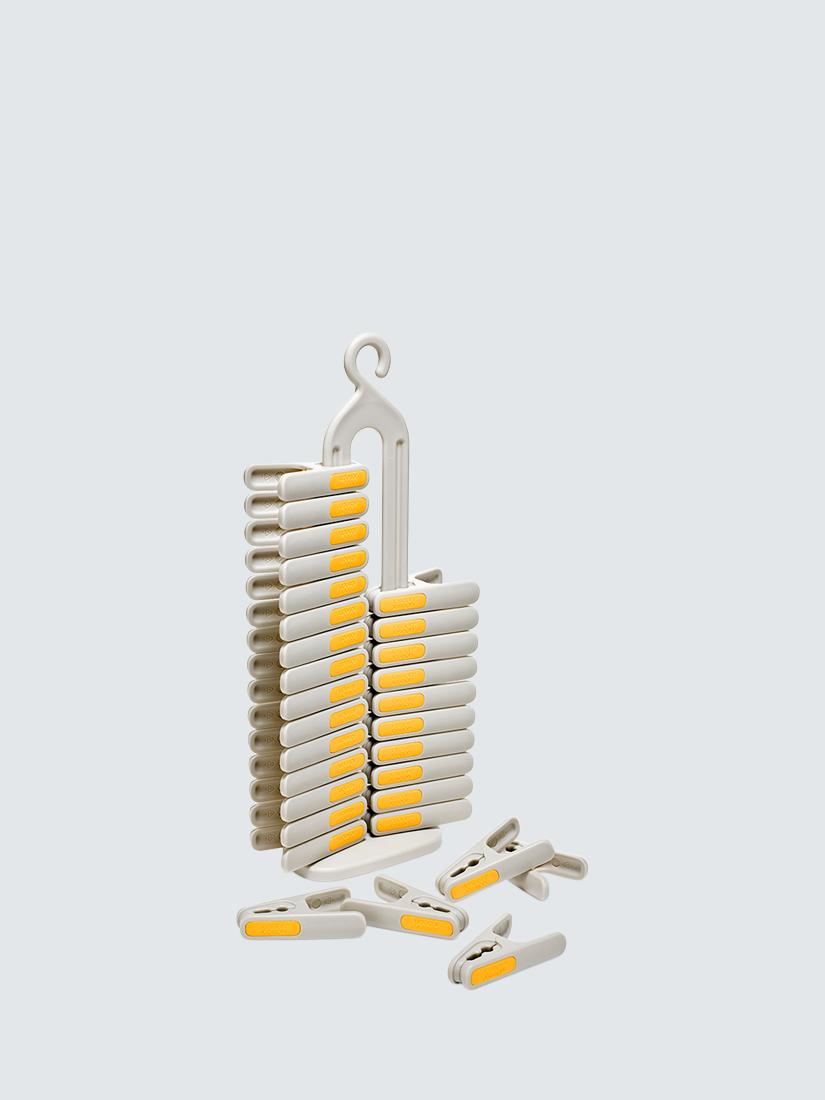 The Peg Store features 30 UV-resistant pegs that clip onto an innovative storage stand, keeping them neatly organised. When attached, each peg slips neatly down the frame into an easy-grab position ready for the next time its needed. The stand also has an integrated hook at the top, allowing it to hang conveniently from your washing line during use.
