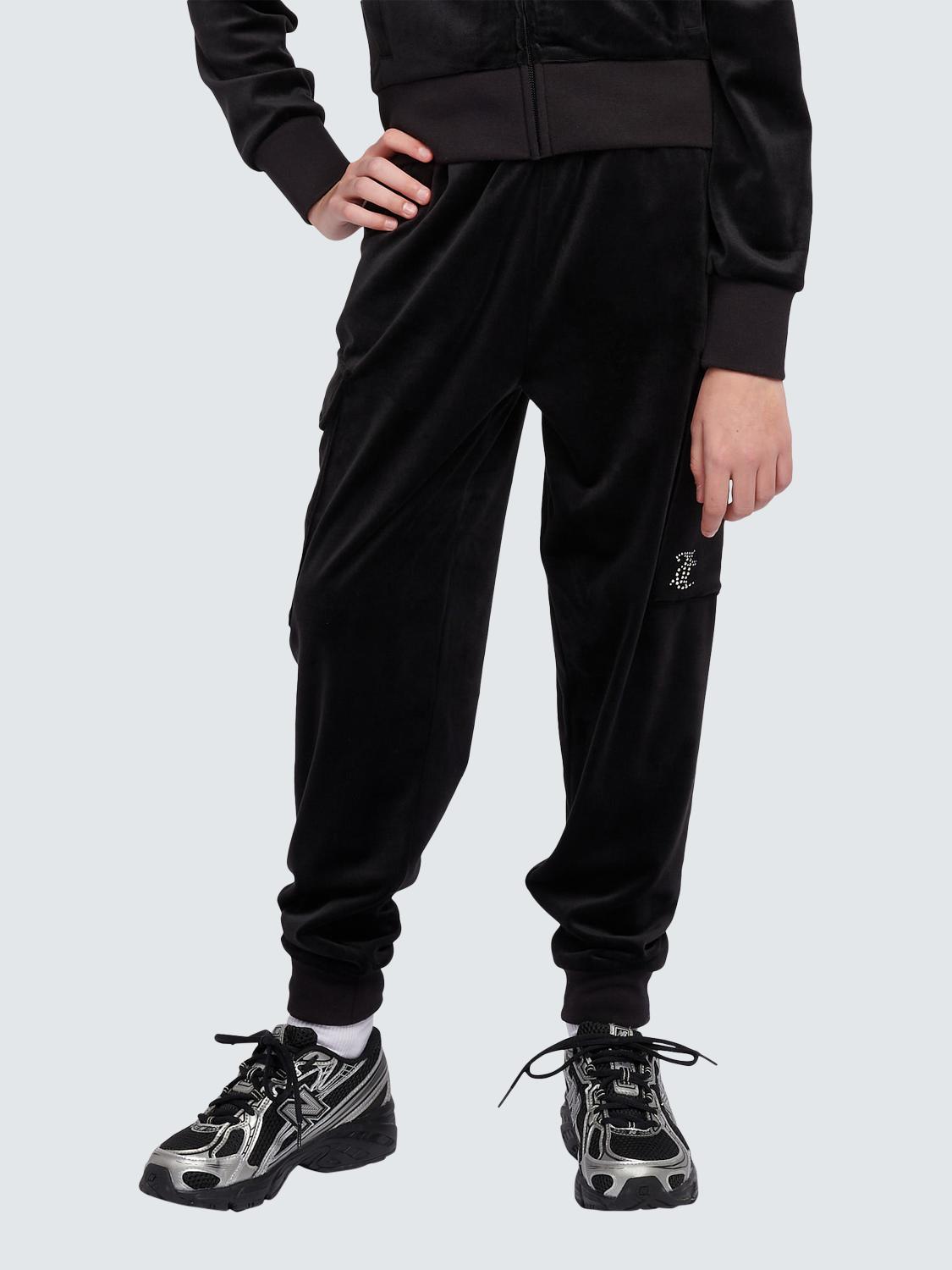 These Juicy Couture Kids Cargo Cuffed Joggers present a distinct fusion of recognisable brand style and necessary utility for their everyday activities. Crafted precisely from soft velour material, these bottoms include functional cargo pockets and feature branded drawcords, ensuring perfect sizing and sustained comfort throughout wear.