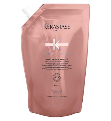 This Kérastase shampoo refill gently cleanses medium to thick, colour-treated hair types. It is specifically formulated with a powerful complex to nourish the hair fibre deeply from within. Experience hair that maintains softness, intense shine, and long-lasting colour vibrancy with every use.