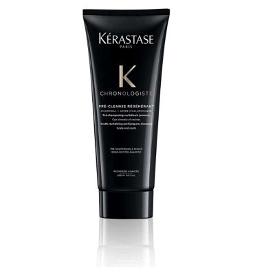This Kérastase Chronologiste Pré-Cleanse Régénérant prepares hair and scalp for optimal cleansing. This luxurious 200ml pre-shampoo treatment works to deeply purify the scalp and roots before you shampoo. Formulated with Charcoal and Hyaluronic Acid, it delivers targeted revitalization for a balanced environment. It is designed to be rinsed out completely after application, setting the stage for intensive hair care routines.