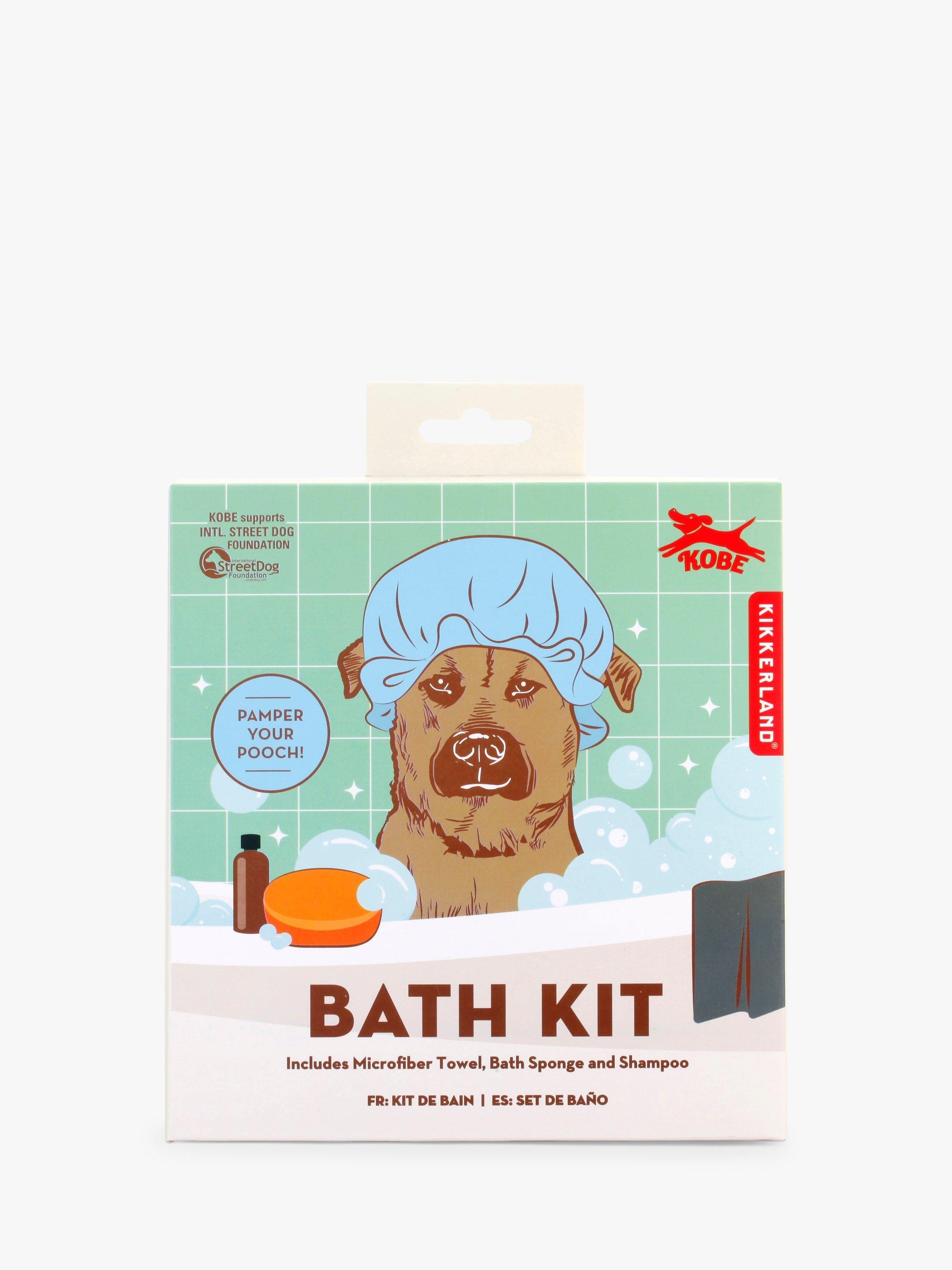Kikkerland presents the Kobe Dog Bath Kit, a comprehensive set designed specifically for superior pet care routines at home. This thoughtful collection includes a plush microfibre towel, a functional bath sponge, and gentle cleansing shampoo inside. It provides everything necessary for thorough, stress-free grooming sessions. Keep your companion clean easily.