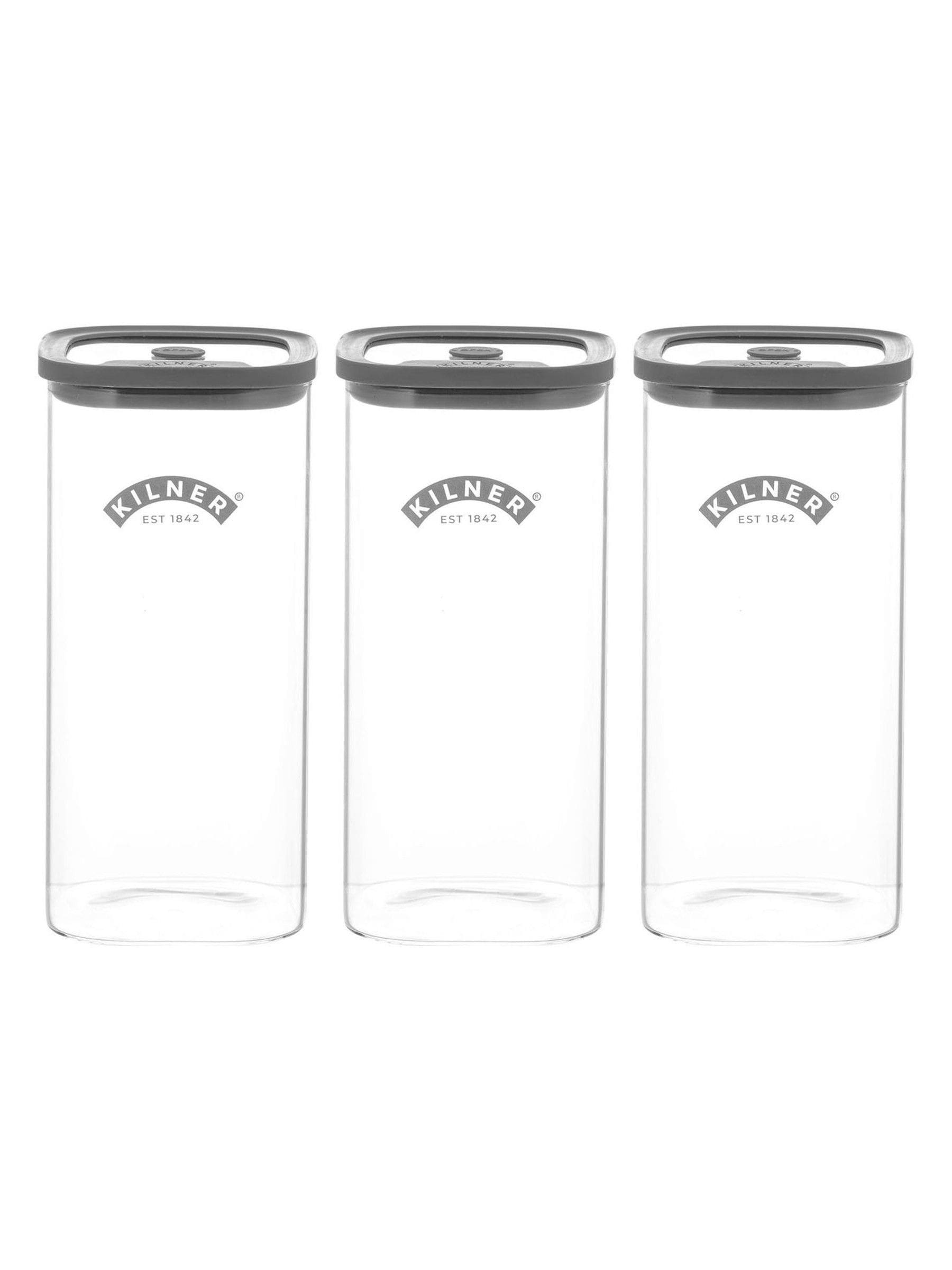 Create a stylish and organised kitchen with the new Fresh Storage Jar Collection. This comprehensive range of borosilicate glass containers offers everything you need for keeping dry foods fresher for longer. Designed to be light weight with square shape corners for easy pouring, the lid is made from tempered sodalime glass, which is easy to push on and pull off. The unique silicone valve creates a strong vacuum seal maintaining ultimate freshness. Glass is the best material to store foods with no chemical leaching and BPA free. The clear body lets you see the contents at a glance with space on the jar body and lid to add labels of your choice. The 1.5 litre jar is perfect for storing flour and granola. They also stack neatly for space efficiency for pantry, cupboard or worktop. In this set you will receive 3 jars. Other sizes in the range include 160ml, 500ml, 1 litre, 2 litre and 3.5 litre. This new range co-ordinates with the original Fresh Storage Collection with matching signature grey silicone lids. Size: ONE.