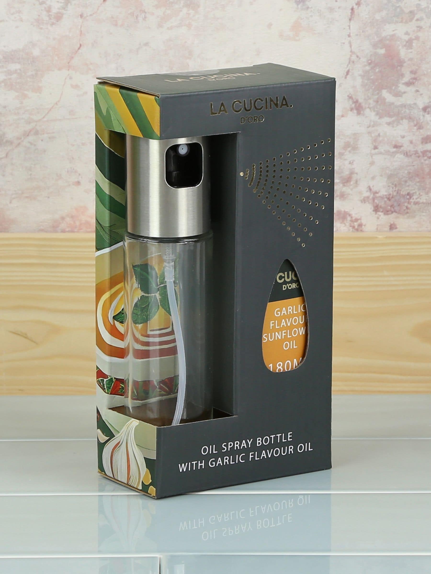 Kimm & Miller Luxury Oil Spray Bottle Set with Garlic Infused Oil - Glass Cooking Oil Spray Bottle for Air Fryer & Cooking - Ideal Cooking Gifts for Men & Women. This luxury oil spray bottle set with garlic-infused oil is the perfect addition to any kitchen, making it an ideal gift for cooking enthusiasts. Garlic Flavoured Oil: Enjoy the rich taste of garlic with this delicious sunflower spray oil (180ml), perfect for everyday cooking, special meals, or as a thoughtful gift for the food lovers in your life. High-Quality Glass Spray Bottle: The glass bottle features a durable metal lid with an easy-spray pump, designed for convenient and even oil application during cooking. Italian Inspired Flavours: Add depth to your favourite savoury dishes with a spritz of garlic-infused oil. Perfect for spraying on your air fryer to prevent sticking, or adding extra flavour to pizza, pasta, or salads. Simplify Meal Prep: This handy spray bottle allows you to evenly coat your foods with a fine mist of oil, helping to avoid sticking and saving you time on cleanup. At Kimm and Miller, it's our mission to create unique, memorable gifts for all of the UK and beyond. We have been busy designing, making, and supplying our gift sets since 2007. In fact, our innovative, design-led approach has helped us to become the UK’s market leader, winning us lots of shiny awards over the last decade. Our team is the very best at what they do, ensuring that everything runs as smoothly as a well-wrapped gift. Size: 0.