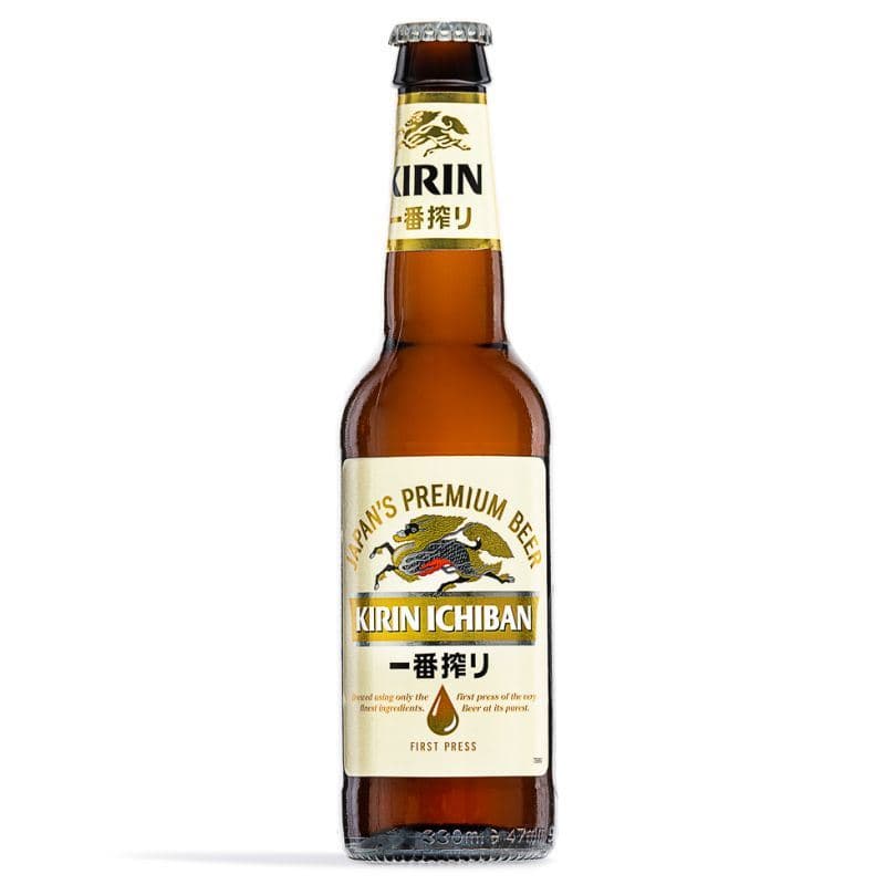 Indulge in the crisp, refreshing taste of Kirin Ichiban, a premium Japanese beer crafted using a unique "Ichiban Shibori" process for unparalleled purity and flavour.