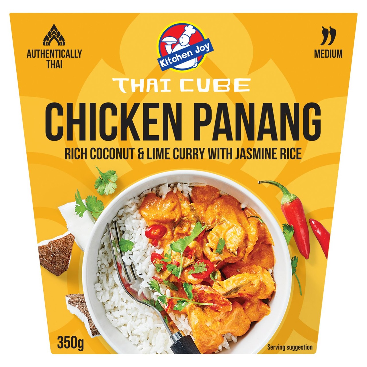 This Kitchen Joy Chicken Panang offers a rich and indulgent take on traditional Thai flavours, served with accompanying Jasmine Rice. The sauce balances coconutty richness with the signature zing of makrut limes, shallots, and galangal. This single-serving option is packaged conveniently in a box inspired by classic noodle cartons for simple storage.