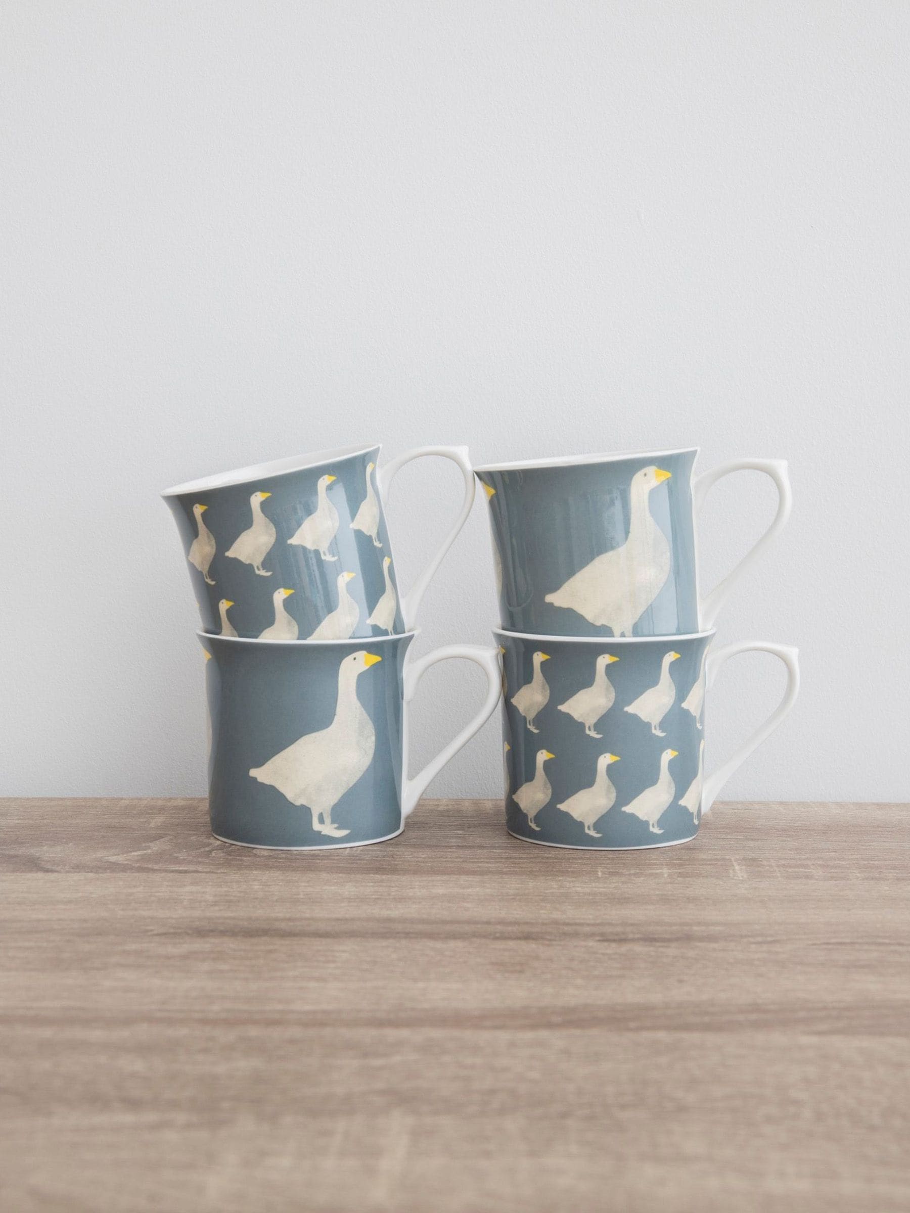 Give your cup collection a flying start with these 4 cheeky goose mugs. Classic design, complete with ornate handles and fluted rims. Bone china is robust, easy to care for and has a beautiful translucent look. Dishwasher-safe for a simple, hassle-free clean-up. These bird mugs come in an attractive KitchenCraft box with a 12-month guarantee. Honk if you love these cheeky bird mugs! Designed in the UK by KitchenCraft, they feature funky stencilled goose designs that look modern, traditional and delightfully different all at once. So, next time you feel in a bit of a flap, reach for one of these kooky mugs and enjoy your favourite kind of cuppa. You get four mugs in the set with two distinct designs. Keep them and love them – or gift them to a friend who's a fan of feathered things. Made of robust bone china. Dishwasher safe. Capacity (each): 300ml.