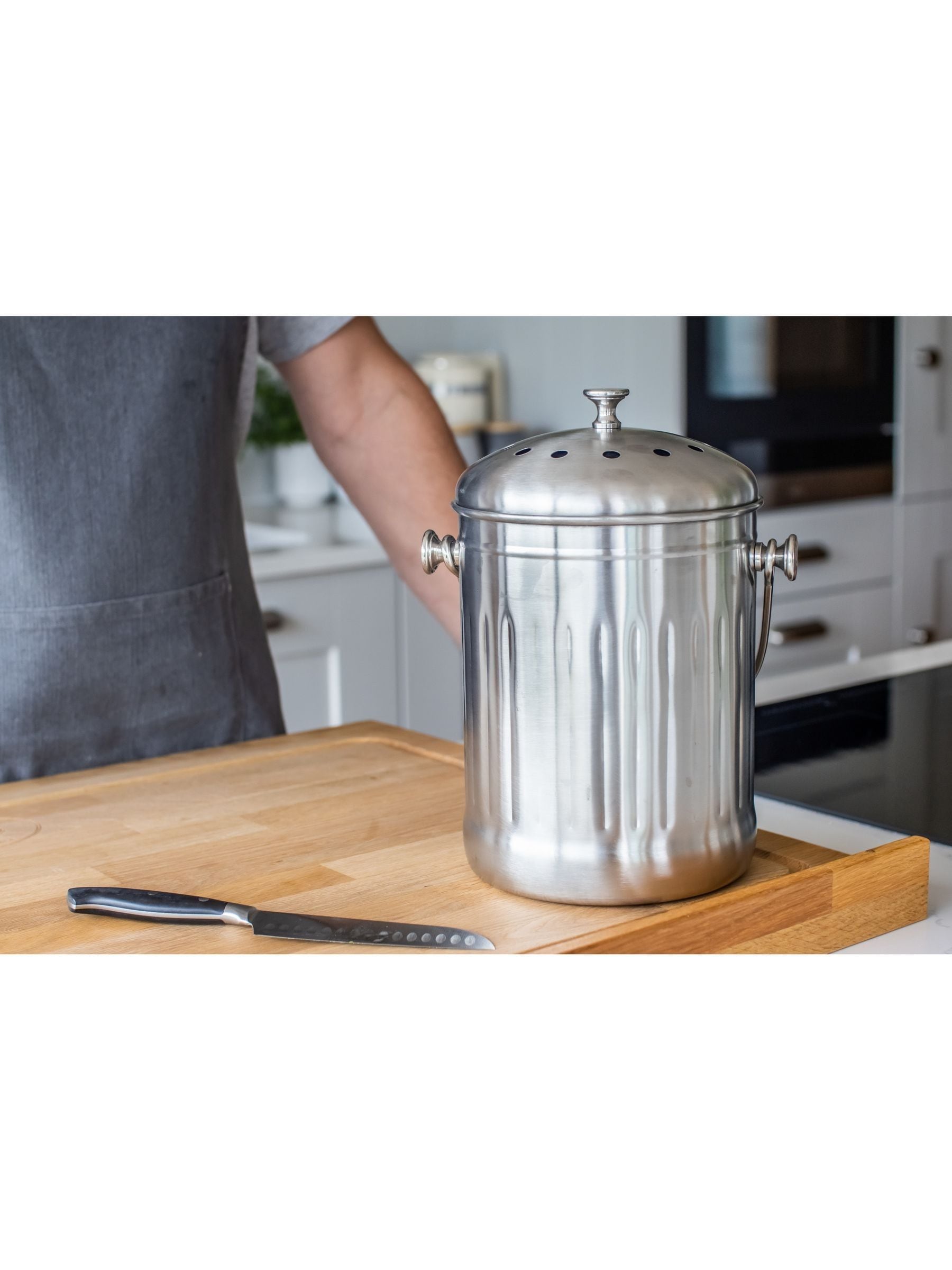 Composting is fun. But carrying scraps of food to the compost heap? Not so much. This sleek stainless steel food waste caddy is the answer. Give it a home on your kitchen floor or countertop, and it will obediently store scraps until you're ready to compost them.