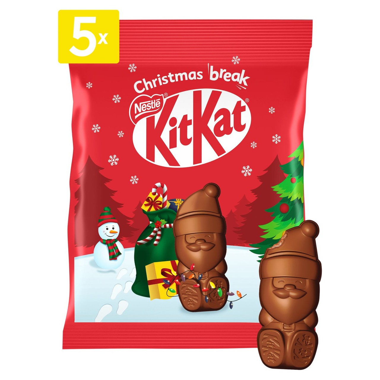 Celebrate the festive season with this convenient 55g sharing bag of KitKat Mini Milk Chocolate Santas. Each portion contains delightful miniature figures combining crispy wafer layers encased in smooth milk chocolate. These seasonal treats are ideal for sharing moments during Christmas gatherings.