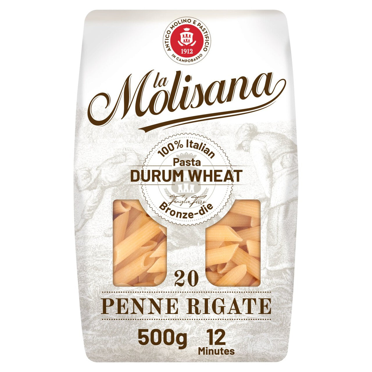 This popular La Molisana Penne Rigate No. 20 offers excellent versatility for many dishes. The 'rigate' design, meaning ridges, effectively captures thick, creamy, or chunky sauces for enhanced flavour delivery. It is exclusively made from the finest 100% Italian durum wheat and fresh mountain water.