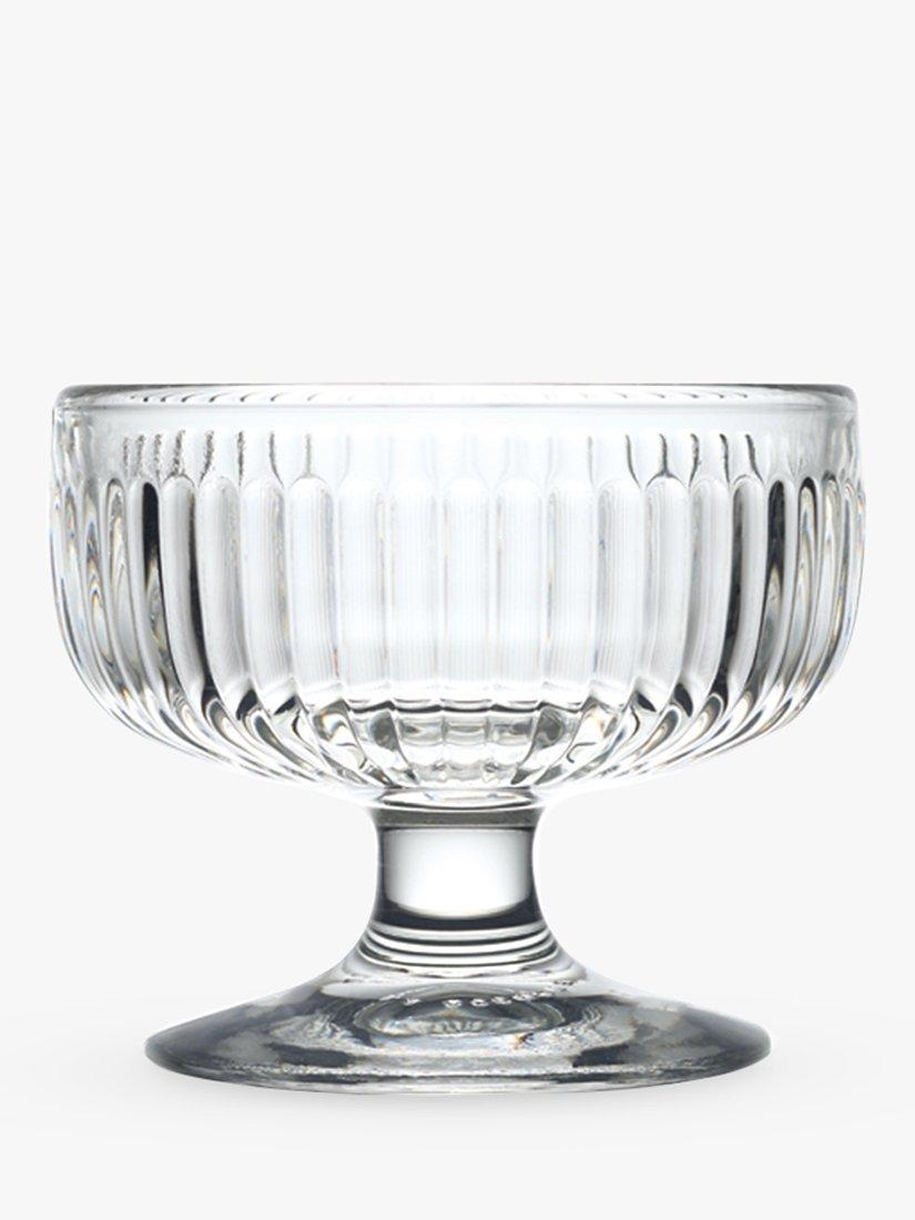 Read MoreA set of six Tahiti stemmed glass bowls from La Rochère. This ribbed pressed-glass design is dishwasher safe. The cup-shaped bowls are stackable and ideal for serving cold desserts, trifles and ice cream treats.