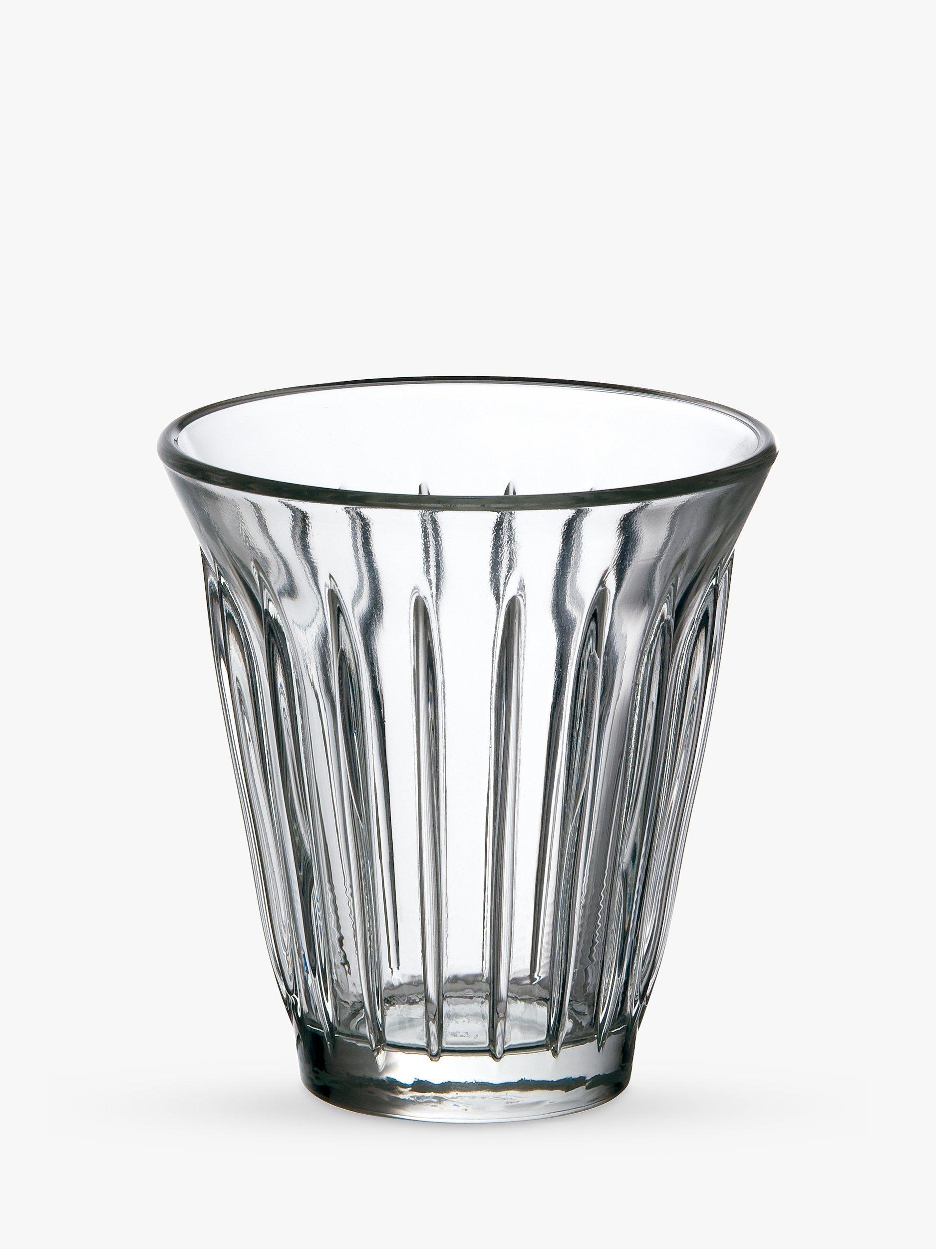 Chic and versatile, this set of six Zinc tumblers from La Rochère are an all-purpose design. Sturdy with a textured pattern, their ridged winglets protect the glass against excessive heat, so you can use them for coffee mornings, as well as for water or cocktails. The glass is dishwasher safe for easy cleaning.