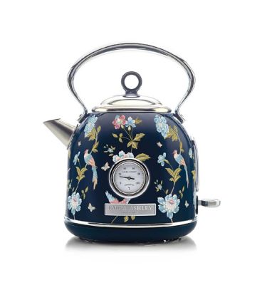 Radiating with timeless grace, the Dome stainless-steel kettle, seamlessly wrapped (by hand) in Laura Ashley's classic Elveden Navy print. Each kettle is hand decorated and finished with a high-grade gloss UV coating to ensure it looks pristine day in day out. The generous 1.7L capacity ensures you're always prepared to serve loved ones or indulge in a personal moment of serenity. With a capacity of up to seven cups. A perfect match for a rich tasting coffee, delicious warm tea, hearty oatmeal, pasta, noodles, and much more.