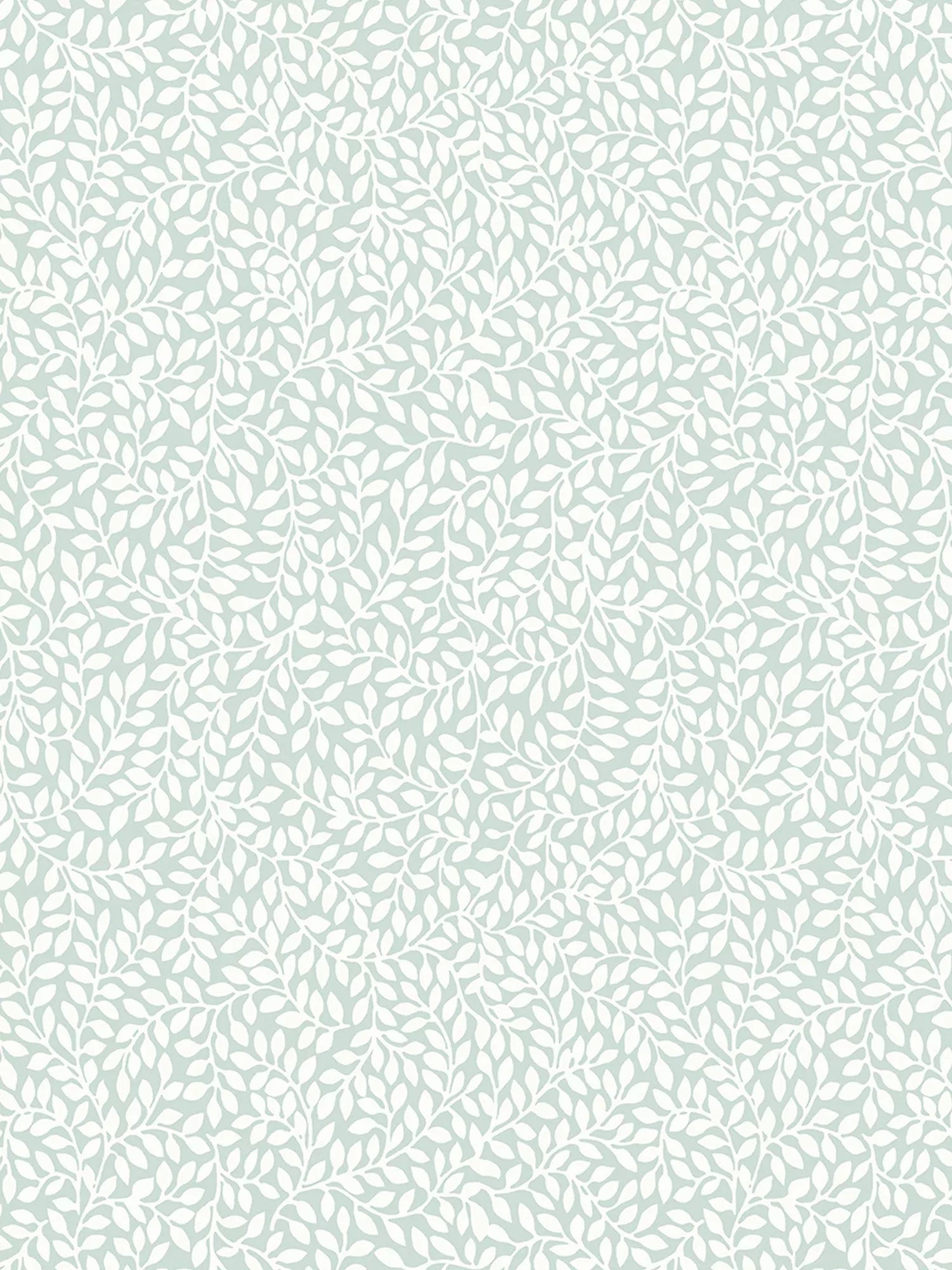 A pretty, small-scale print design with delicate white leaves tumbling together on a soft duck egg background. Little Vinesis a timeless delight for any room.