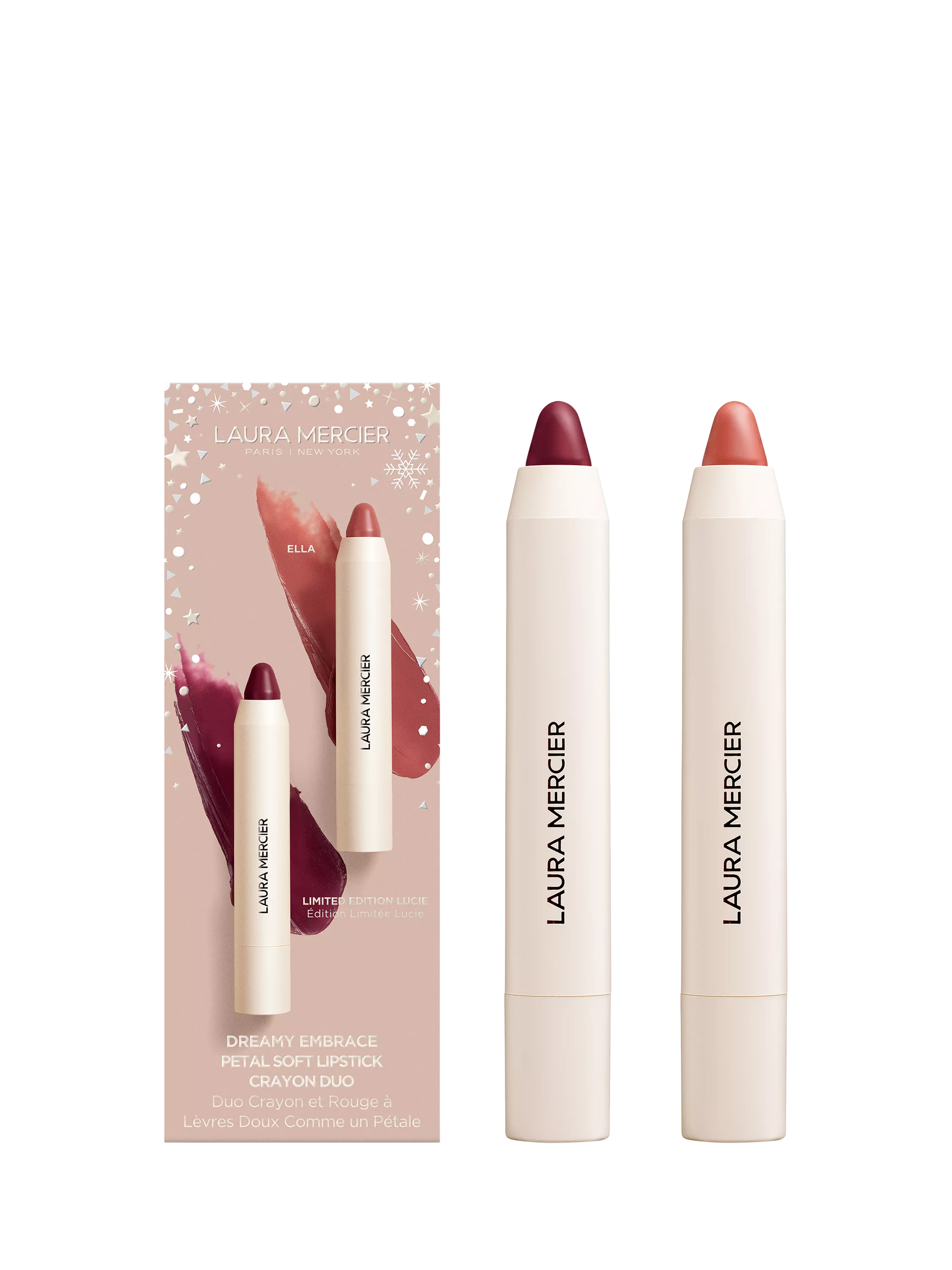 Two full-size Petal Soft Lipstick Crayons, including limited-edition shade Lucie, for lips that look and feel petal-soft.