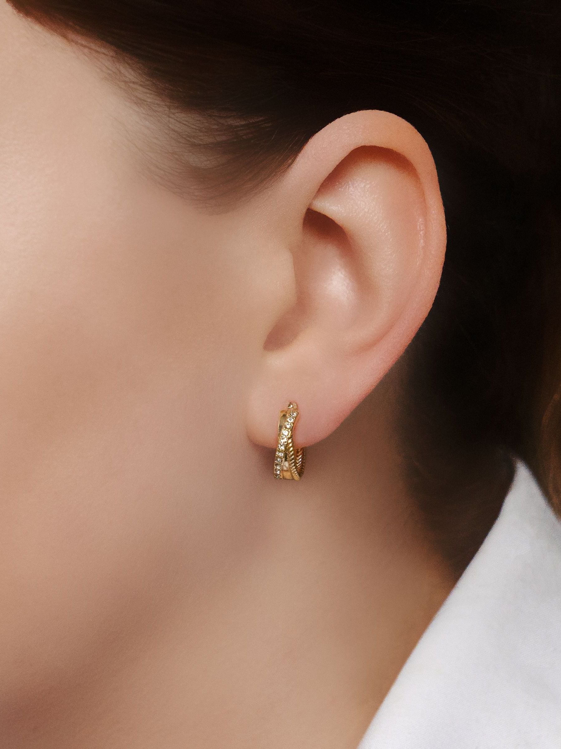 Lauren Ralph Lauren Gold Gold Tone 15mm Twisted Rope Pave Hoop Pierced Earrings