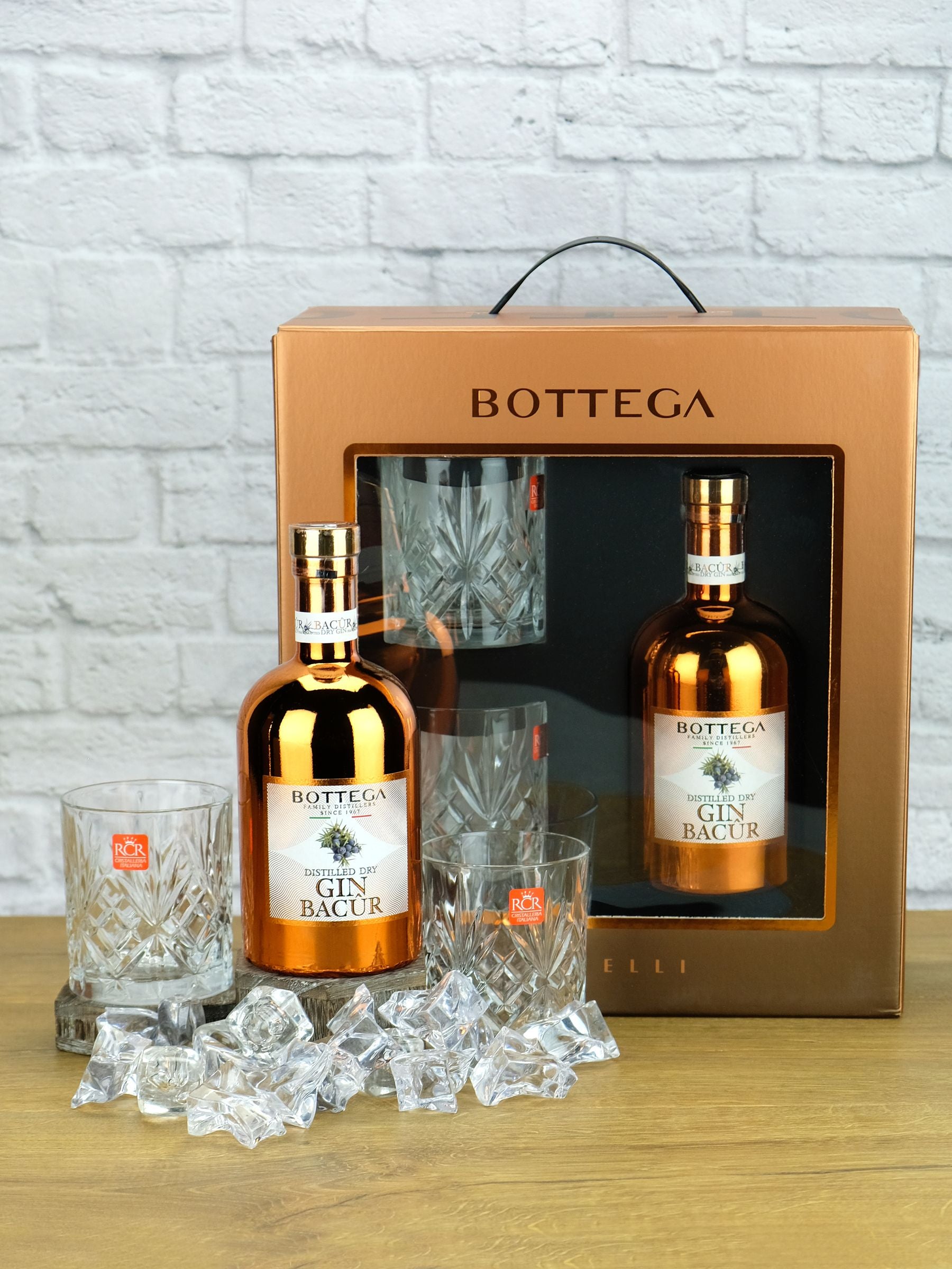 This Bottega Gin and glasses gift set is an ideal present for Gin enthusiasts, elegantly packaged with a pair of glasses in a stylish gift box. Crafted by the iconic Italian distiller Bottega, Bacur Gin is based on a recipe of botanicals including juniper, myrtle, sage and lemon zest, locally sourced from the surrounding Veneto region at the foot of the Alps. Contents: Bottega Bacur Gin 500ml - 40.0% ABV / 2 Gin Glasses If any items are unavailable a suitable replacement will be substituted.
