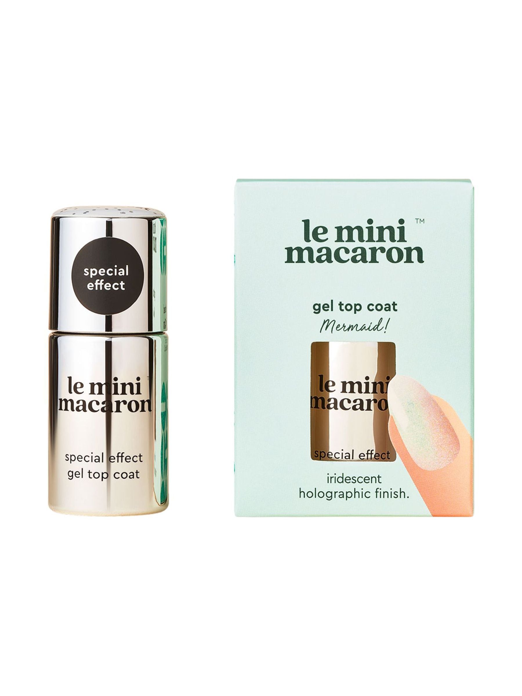 Mermaid Top Coat: an iridescent gel top coat, with a green-blue holo effect (semi-transparent)