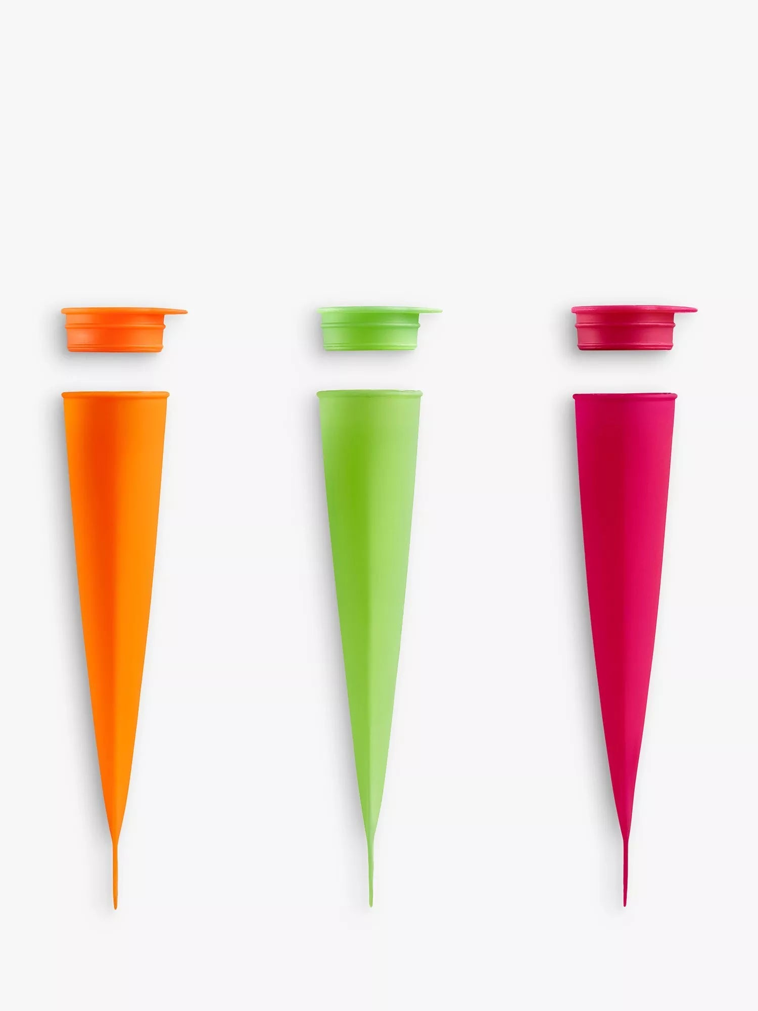 Create your favourite ice creams and delicious desserts with this pack of three Lékué moulds. Ideal for using with children, ice cream making with this pack is an experience worth sharing. Clean, reusable, unbreakable and lightweight, they close to prevent liquid spills and the BPA-free moulds are dishwasher-safe for easy cleaning. The pack contains three moulds in different colours.