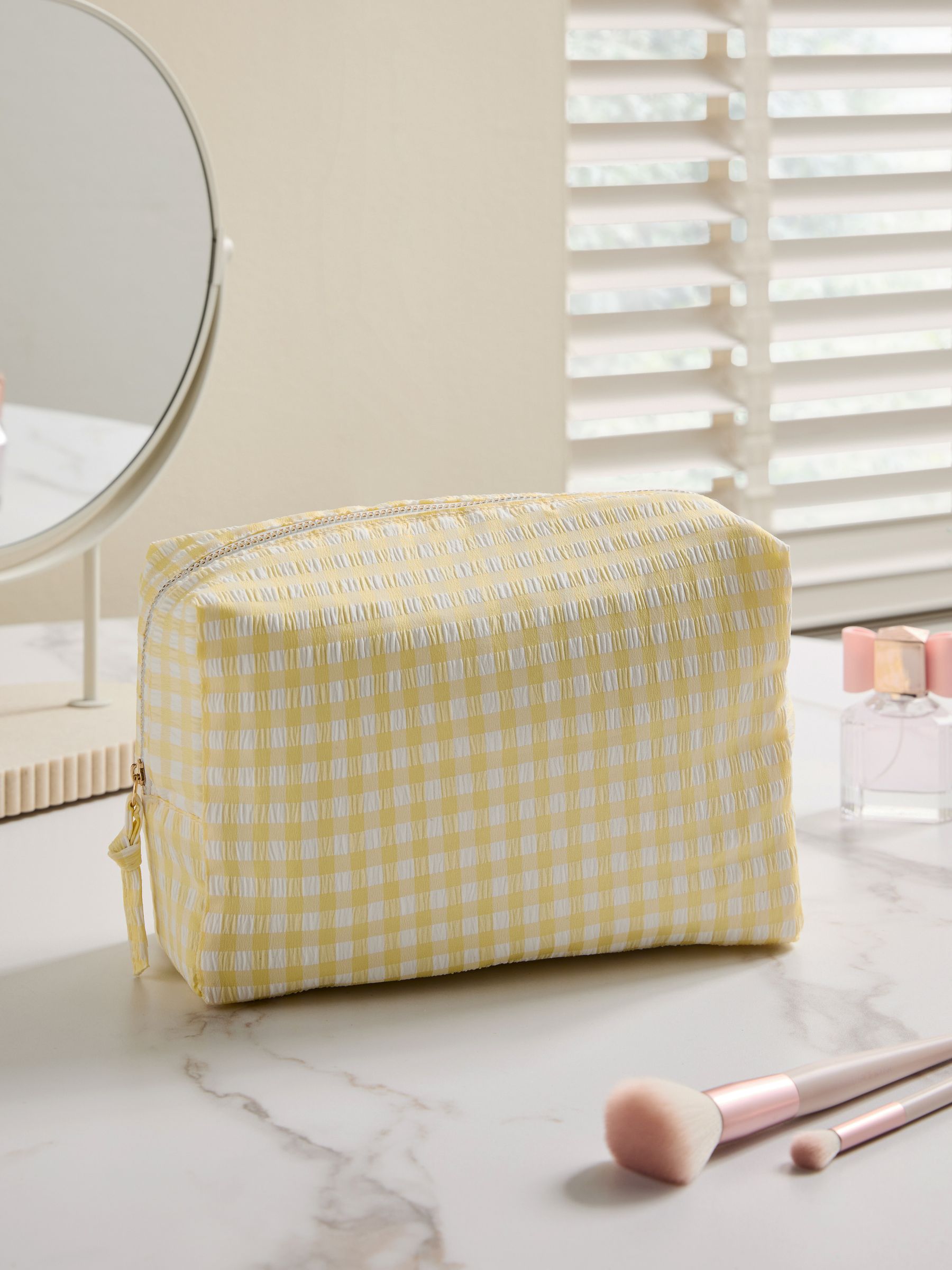 A reversible makeup bag with a stunning lemon and gingham print, perfect for storing all of your makeup essentials. Zip Closure Reversible Read More