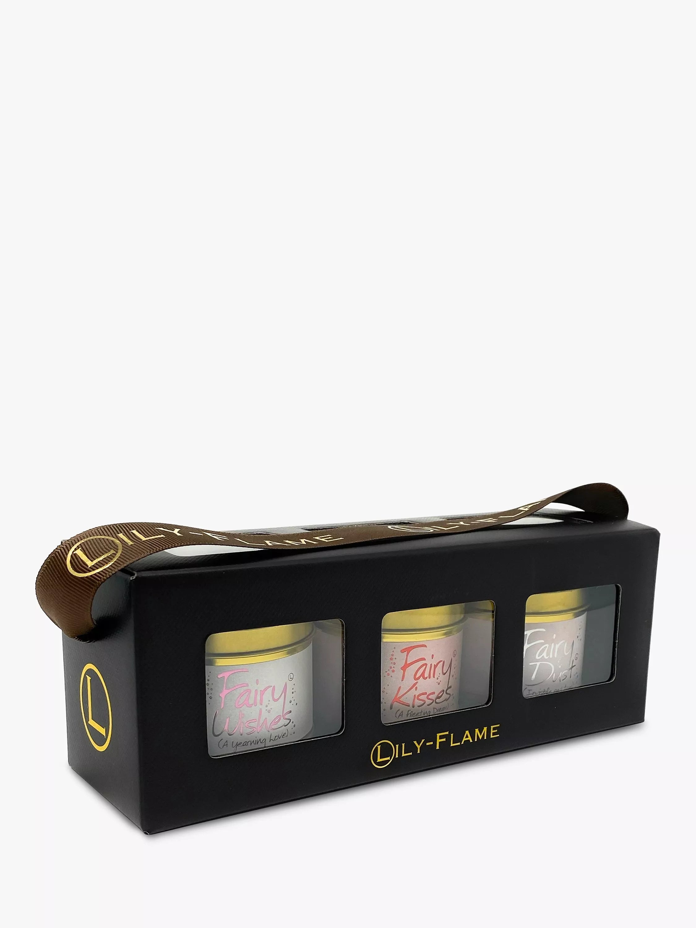 This lovely gift set includes three mini tin candles from Lily-flame, for an all enveloping Fairy tale of fragrance.