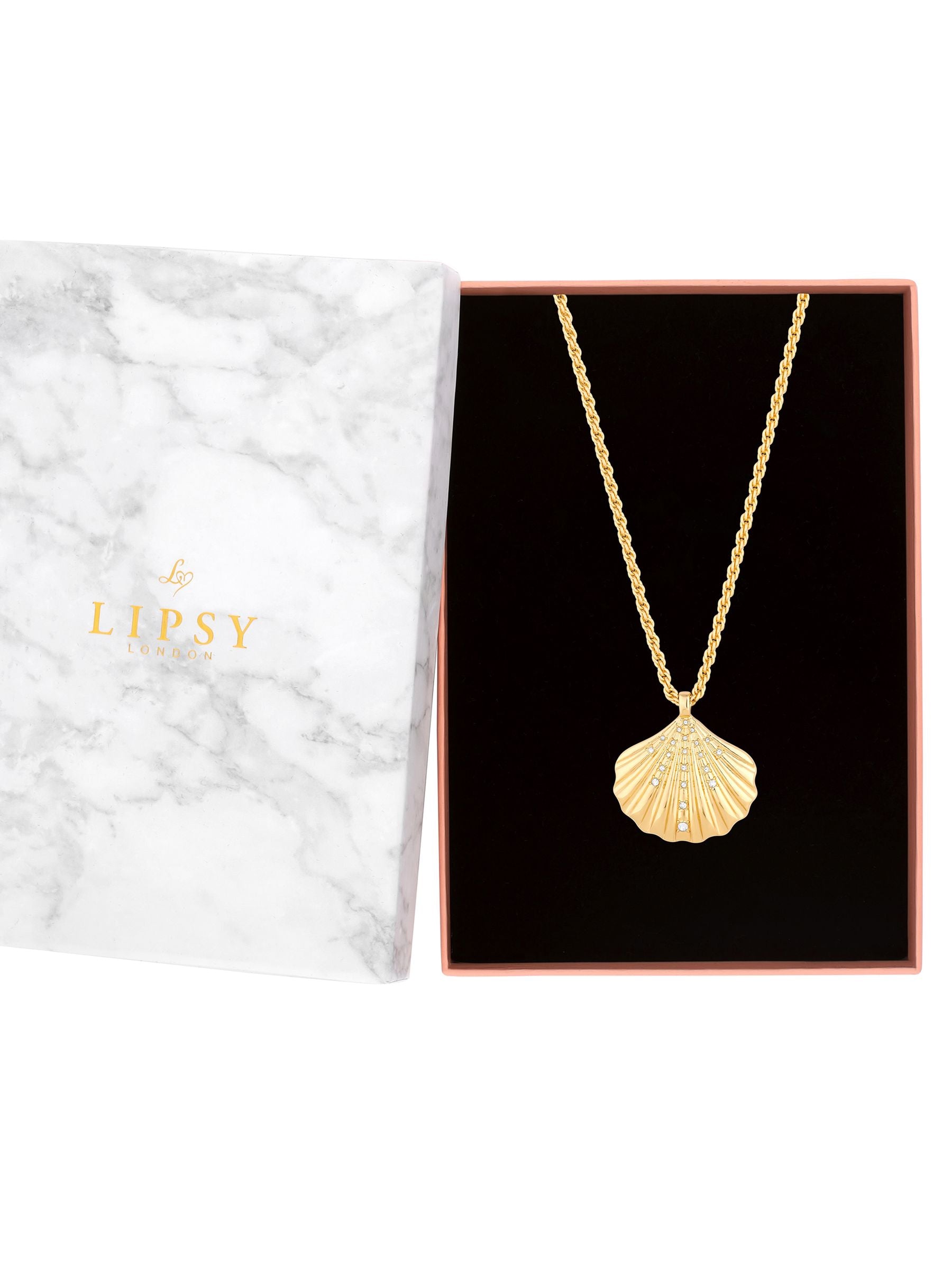 From the Iconic British brand Lipsy, this must-have Lipsy Gold Plated Oversized Shell Necklace - Gift Boxed is the perfect gift to give to someone you love or a special treat for yourself.