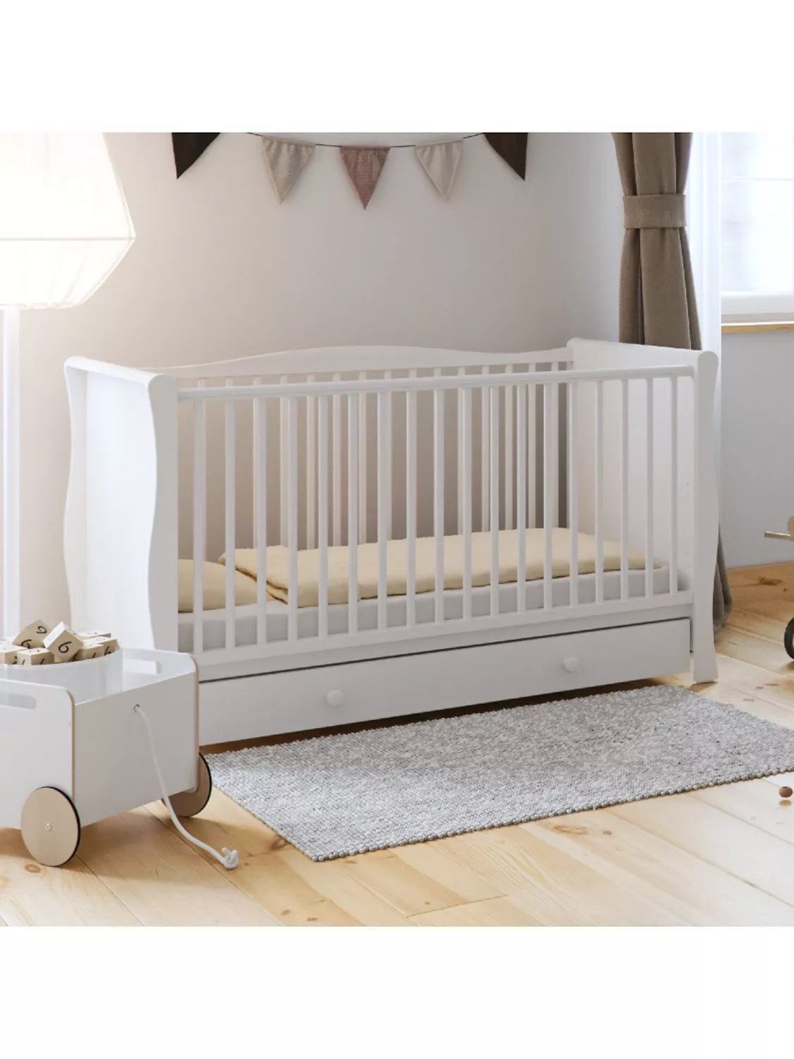 The Little Acorns Traditional Sleigh Cot has a classic, clean look featuring beautiful curved edges which is sure to compliment any nursery. With its sturdy construction, this beautiful cot has 2 mattress heights to adapt to your child as they grow. Plus, it's smaller size makes it ideal for tighter spaces.