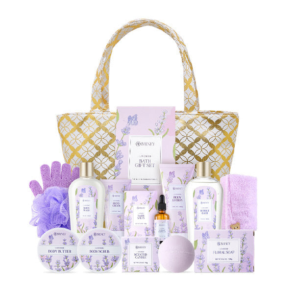 This extensive 15-piece lavender gift set is designed for complete relaxation.