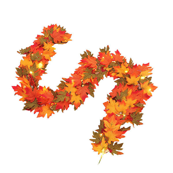 This Livingandhome garland captures the seasonal essence with vivid maple leaves, creating a natural and organic display. The 200cm length provides ample coverage for your chosen area. It features an integrated LED light string powered by batteries for convenient placement.