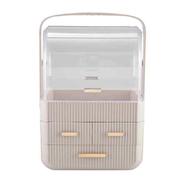 Read MoreThe box includes three drawers, two of which are smaller, ideal for holding items like lipsticks and mascaras. The bottom drawer can accommodate foundations, and the handle is made for easy movement.