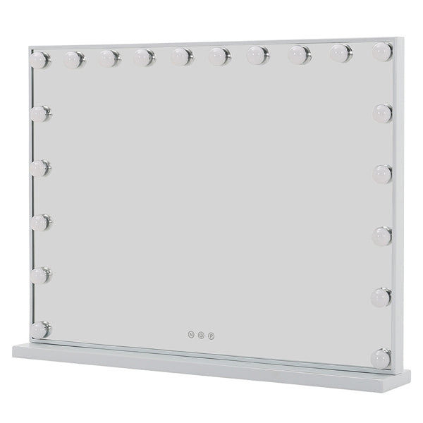 Convenient USB charging port on the back 3 adjustable colour temperatures customize a perfect makeup environment Quick response touch screen control, simple and smart Sturday metal base and frame in white finish Overall Dimension: 80cm W x 12cm D x 62.5cm H Mount Type: Freestanding Frame Material: Metal Power Source: USB Lighting Included: Yes Dimmable Lighting: Yes Bulb Type: LED Number of Bulbs: 20