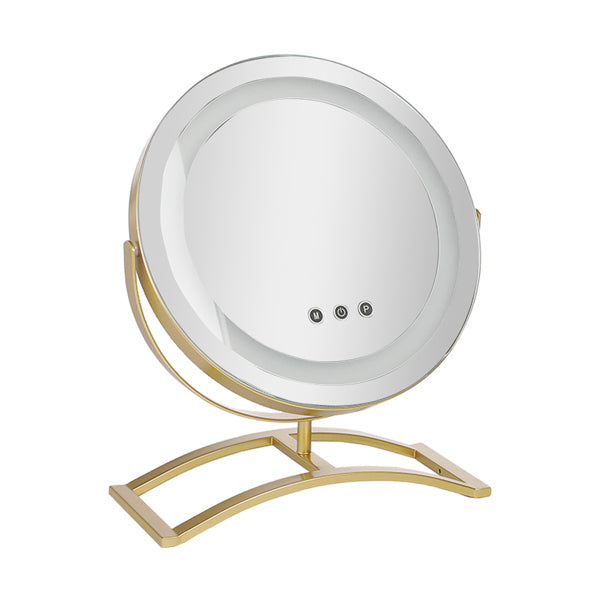 Made of high-quality glass and metal frame * Touch screen button to control the light colors (white, warm white and warm) * Can be rotated 360 degrees according to your needs * Serves as a perfect gift for female friends Specifications: Dimension: 25*10*38cm Voltage: 12V Current: 1A Mount Type: Freestanding Mirror Type: Makeup / Shaving Shape: Round Orientation: Vertical or Horizontal Framed: Yes Frame Material: Metal Frame Design: Classic Frame Finish: Gold Power Source: Plug-in Lighting Included: Yes Dimmable Lighting: Yes Compatible Bulb Type: LED Plug Included: Yes Package Content 1 x LED Makeup Mirror