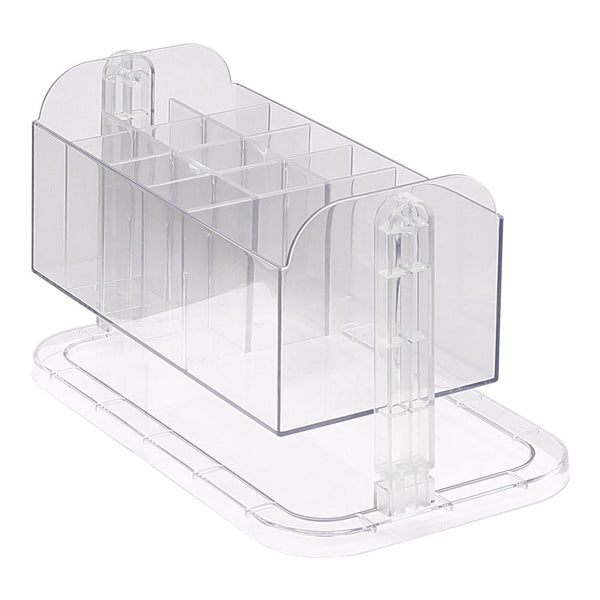 crafted from durable plastic this makeup organizer combines lightweight convenience with a minimalist design that easily complements any vanity