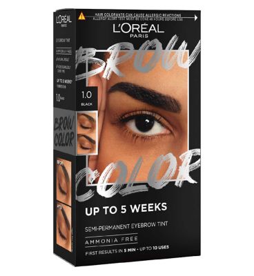 Achieve defined, beautifully coloured eyebrows easily with the L'Oréal Paris Brow Tint in shade 1.0 Black. This semi-permanent formula delivers noticeable results after just five minutes of application. It is designed to provide convenient, long-lasting colour that simplifies your daily makeup routine.