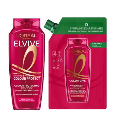 LOréal Paris Elvive Colour Protect Shampoo with Refill Pouch Bundle