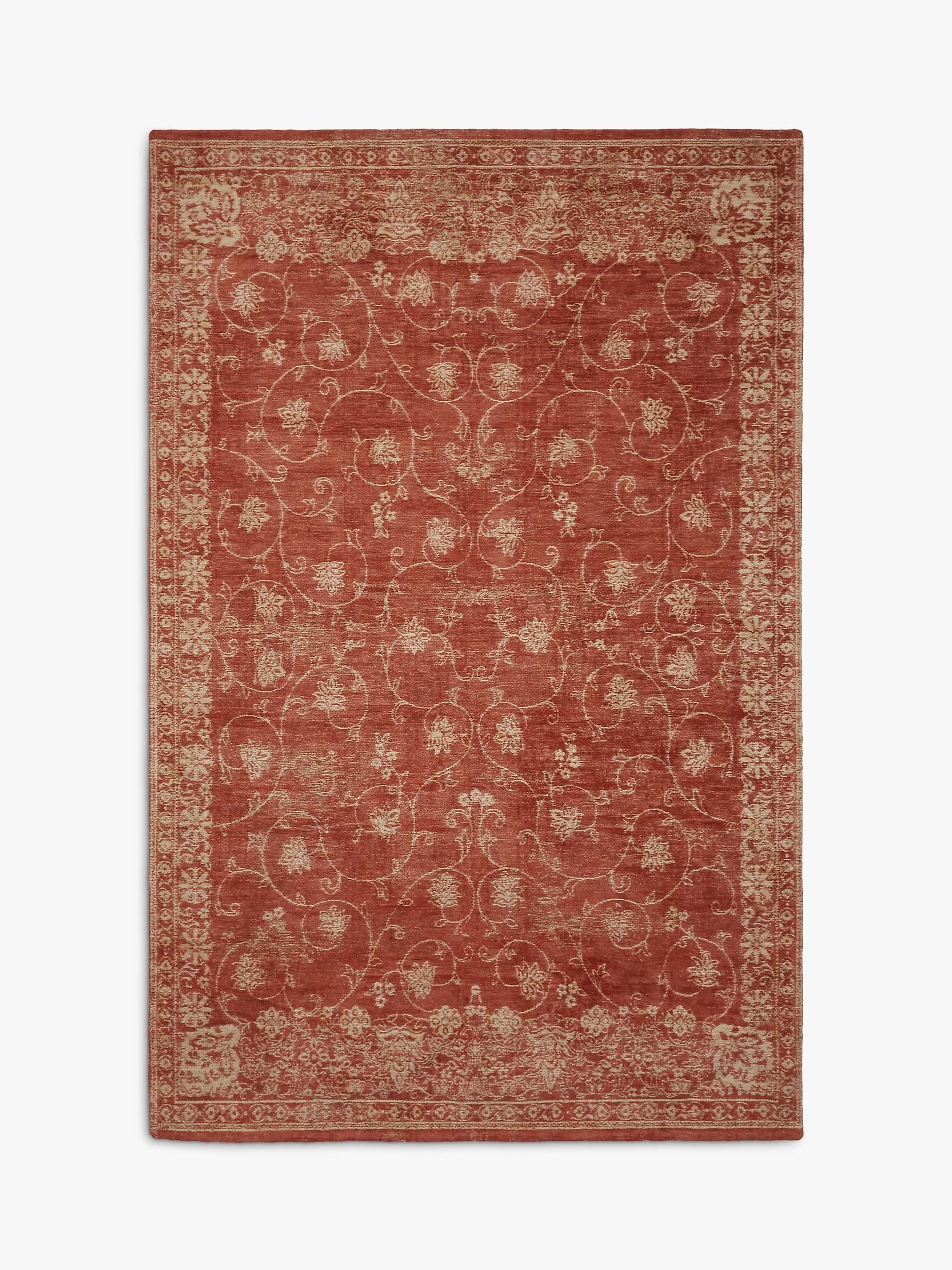 Transform your home with the Louis De Poortere Casablanca Rug, a stunning flat-weave rug perfect for adding warmth and style to any room. Its traditional floral pattern and terracotta hues create a timeless, vintage aesthetic. This durable rug is also 100% recyclable, making it a sustainable choice for your home.