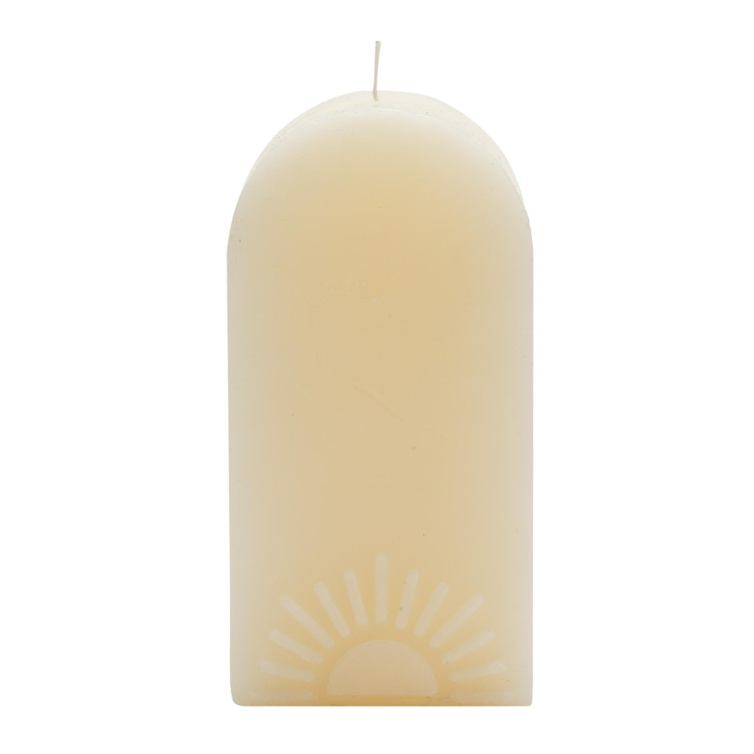 Brighten your space with the distinctive Habitat Sunrise shaped candle from the Luna Collection. This novelty piece offers a unique decorative element for any room. It provides a gentle, ambient light experience when lit.