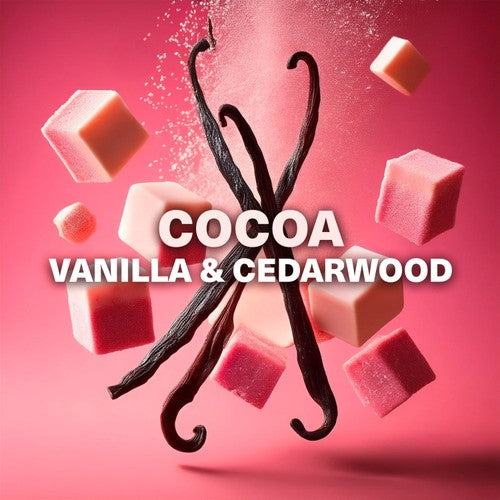 • Features a delectable scent blending creamy cocoa, vanilla, and cedarwood notes.