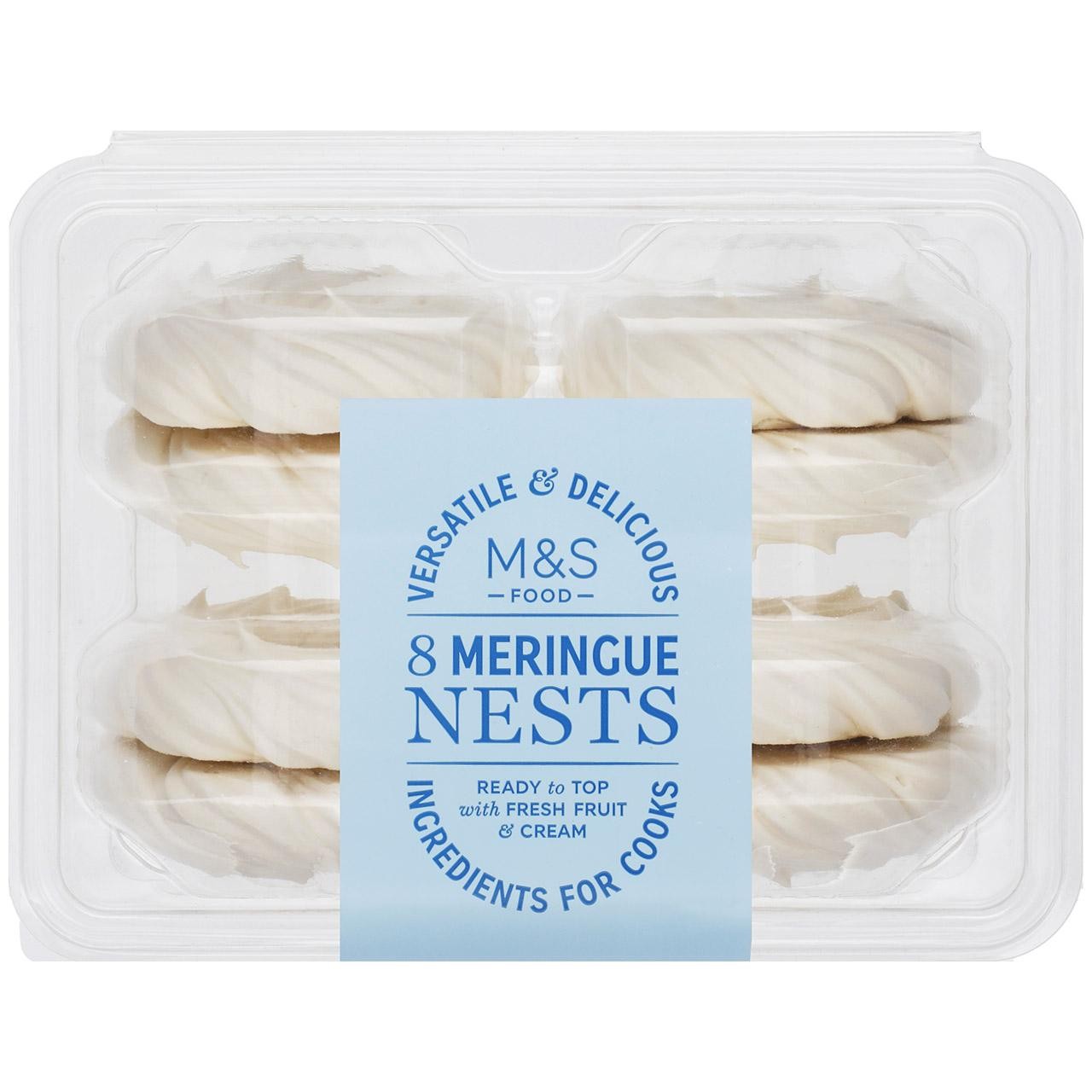 M&S Food presents these eight Meringue Nests, offering a convenient and high-quality base for your favourite desserts. These ready-made nests are versatile, providing an effortless starting point for sweet creations like Eton Mess or pavlova. They are perfectly formed for easy topping with fresh cream and seasonal fruit.