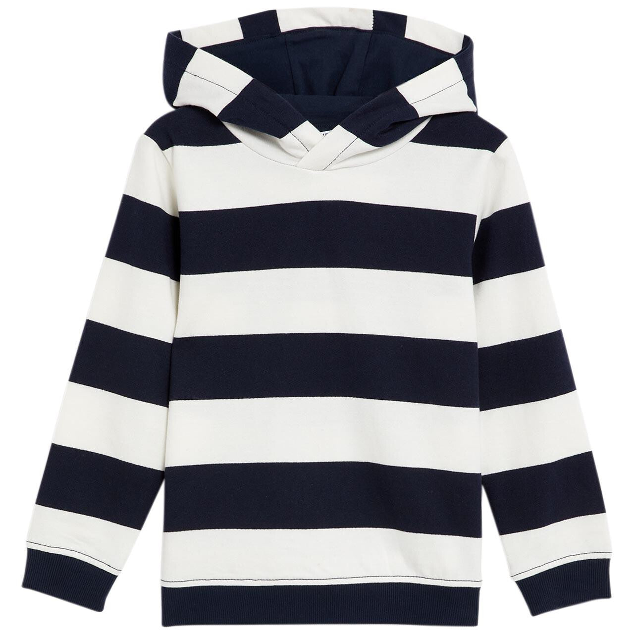 This M&S hoodie features classic stripes, making it a staple piece for his wardrobe. Crafted from pure cotton, it offers natural comfort suitable for daily wear. It is designed with a regular fit for a relaxed feel and easy layering throughout the year.