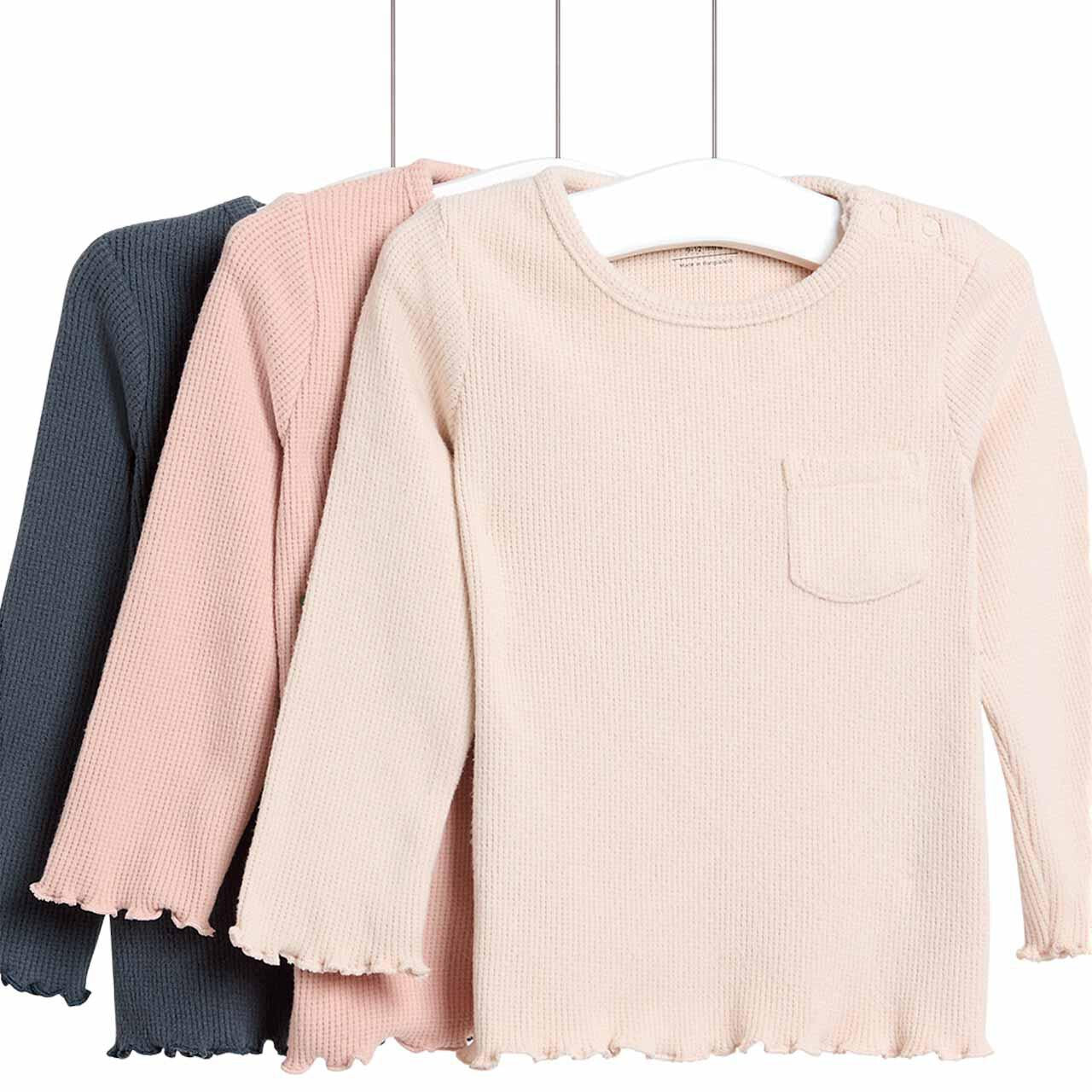 Refresh their wardrobe with this convenient three-pack of long-sleeved tops suitable for ages 0-3 months. These baby waffle tops are crafted from soft brushed waffle fabric designed for gentle wear. They provide necessary warmth and are an essential addition to any newborn's clothing collection, simplifying daily dressing routines.