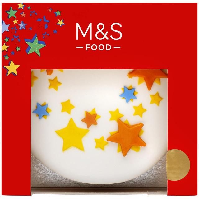 M&S Buttercream & Raspberry Jam Star Cake A light sponge cake filled with buttercream and raspberry jam, covered in soft icing and finished with royal icing decorations. Serves 8.