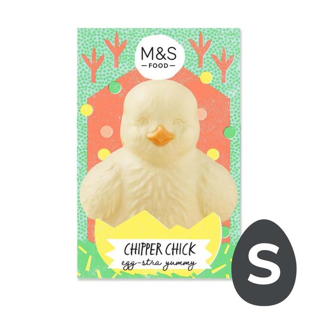 M&S Chirpy ChickEgg-stra yummy decorated hollow white chocolate chipper chick.