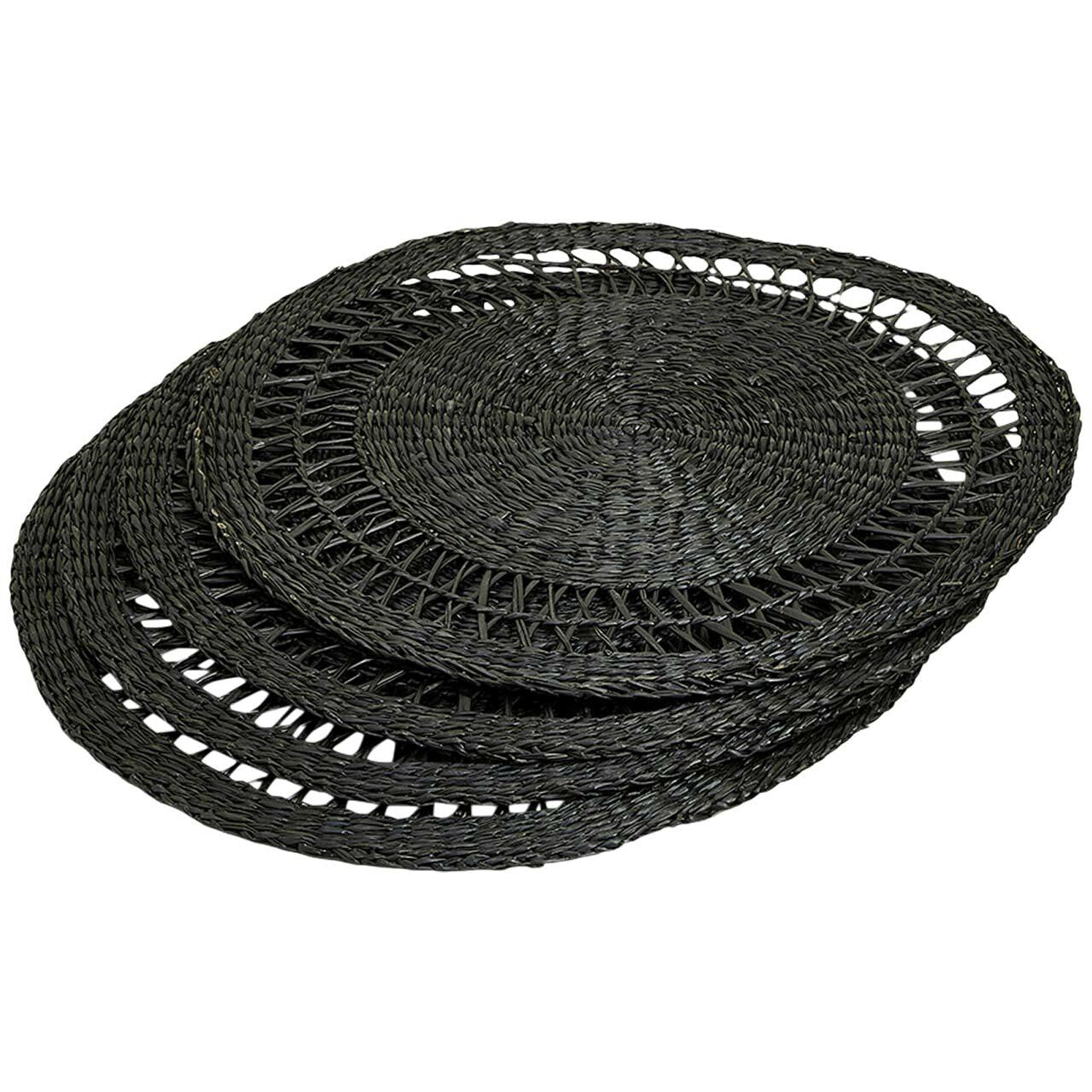 The M&S Collection offers this quartet of round placemats, expertly crafted from durable woven seagrass fibres. These items are intended to preserve your dining surfaces from heat damage and spills. Their deep, dark tone and textured construction lend a distinct, organic style to your table setting, suitable for any environment.