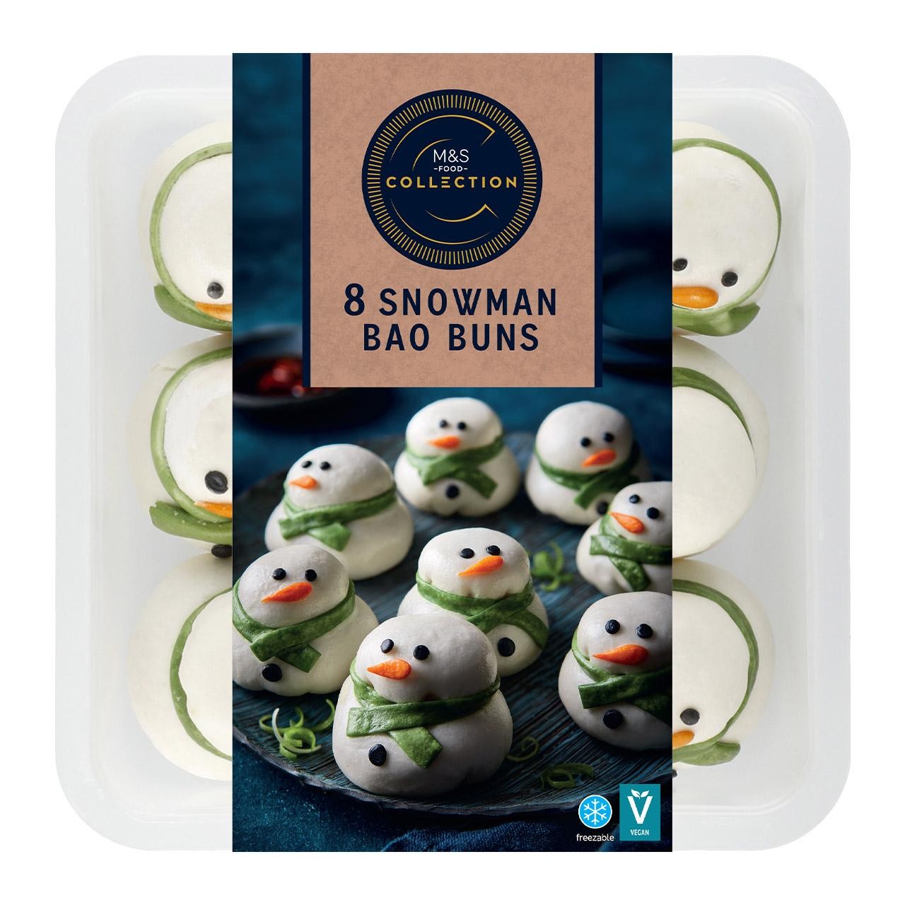 These M&S Collection bao buns are uniquely shaped into festive snowmen for an appealing, whimsical presentation. Each pack contains eight hand-made, steamed buns which are generously filled with a flavourful vegetable pad Thai mixture. They offer a delightful and convenient option for seasonal dining or for those seeking interesting vegan bao buns.