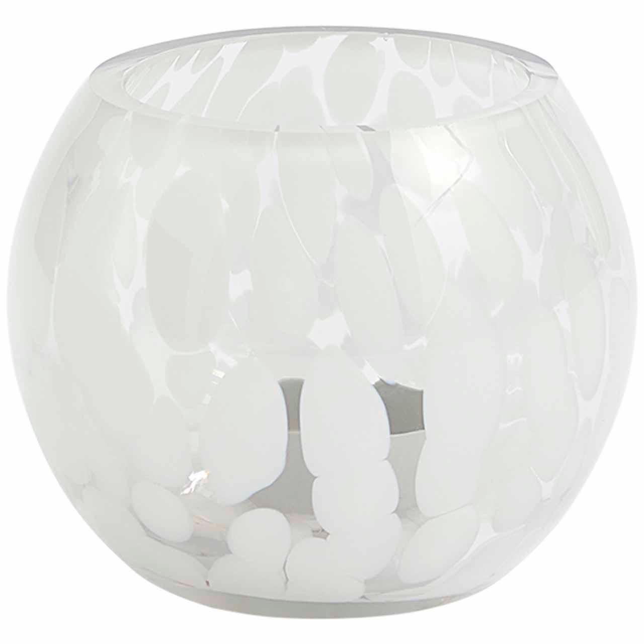 Illuminate your space with this distinctive glass tealight holder, designed to beautifully showcase your favourite candles. It features an attractive, confetti-style pattern applied across the clear glass surface, introducing subtle texture and visual depth to the overall design. This holder is crafted with an elegant, softly rounded shape, ensuring a sophisticated and timeless aesthetic suitable for various home settings.