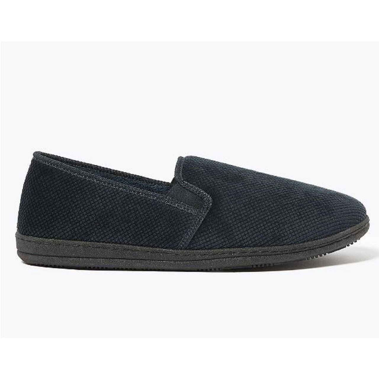 These lightweight M&S cord slippers offer snug comfort for wearing around the house. They feature a regular fit and are constructed from soft velour material for a pleasant feel. Designed for ease of use, these navy slippers incorporate helpful features to enhance your indoor experience.