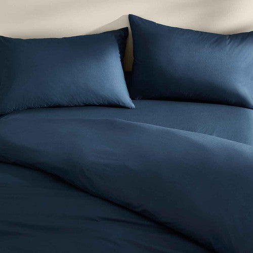 Refresh your bedroom linen with this premium single bedding set, presented in a deep navy colour. This set is crafted from a smooth percale fabric blend for a comfortable feel. It features Stay New™ technology designed to minimise bobbling and fading during laundering.